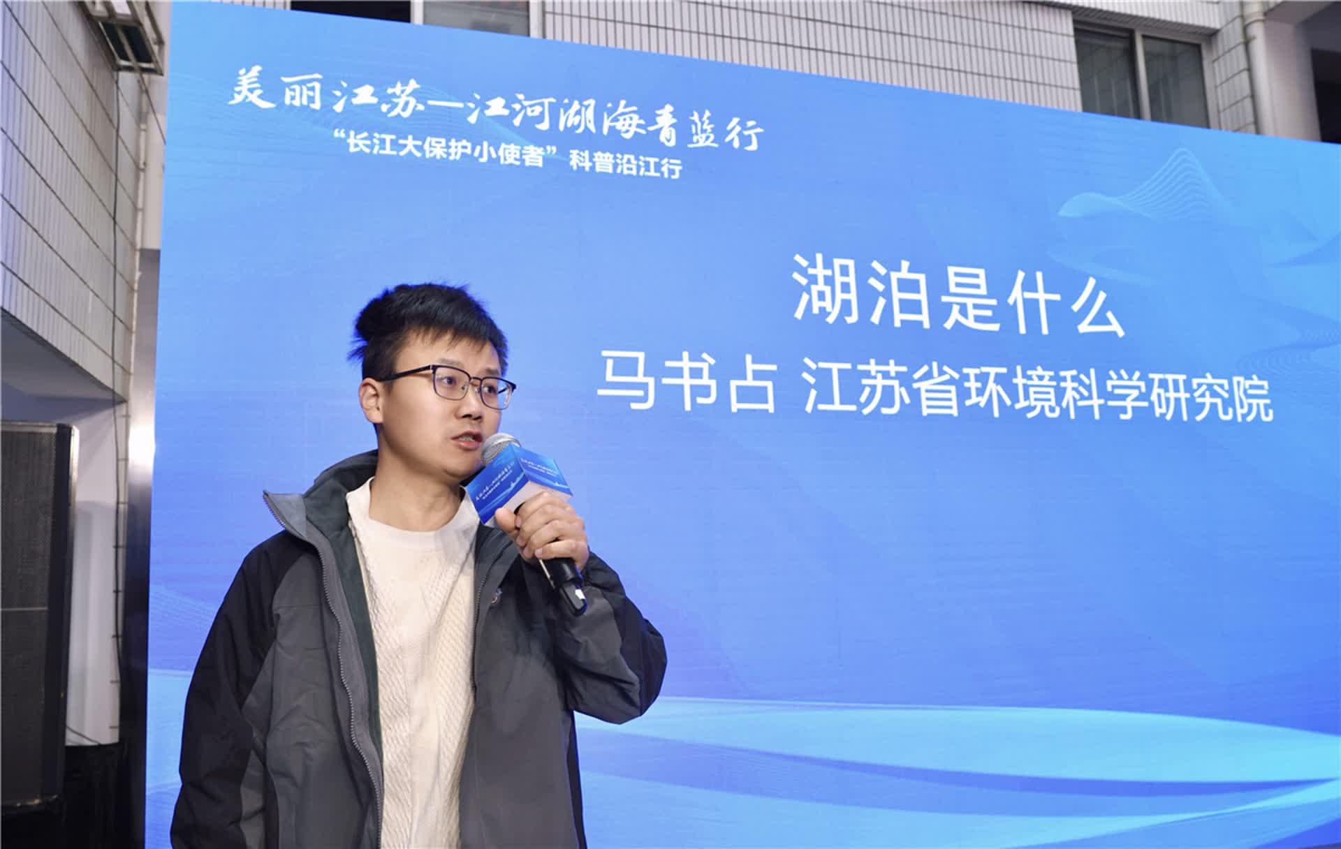 在活动现场,南京金地未来学校的同学和江苏省生态环境厅老干部处组织的老同志志愿者共同登台,带来了优美的诗歌朗诵节目《春江花月夜》和气势磅礴的《长江之歌》,精彩的表演让人们沉浸式体验长江文化之美,感受到长江文化的传承发展。江苏省环境科学研究院的马书占博士为同学们上了一堂图文并茂、生动有趣的科普课,详细讲解了水环境中生物的多样性。