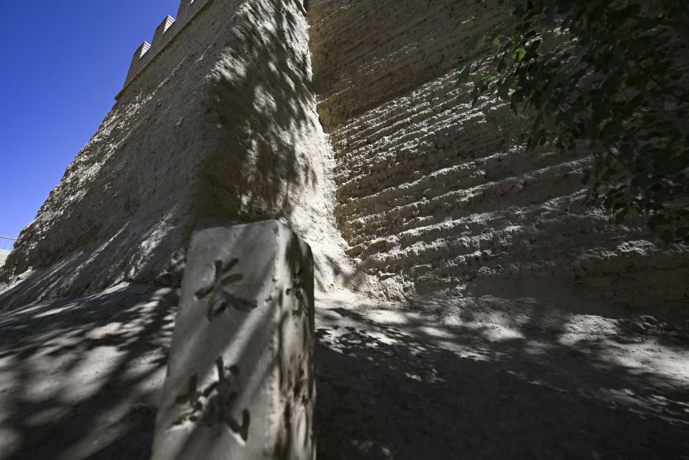 7月13日拍摄的嘉峪关石关峡长城一段墙体。经修缮人员向墙体注入PS材料(一种高模数的硅酸钾溶液)后,受损墙体得到加固。