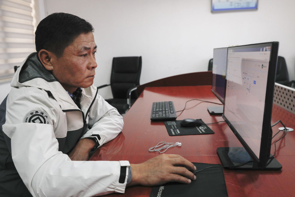 9月26日,嘉峪关丝路(长城)文化研究院文化遗产监测中心副研究馆员杨殿刚在甘肃嘉峪关关城景区查询关城监测系统平台数据。