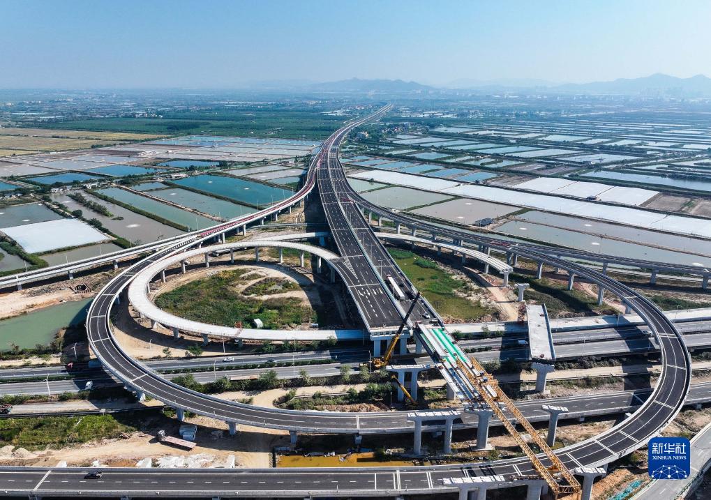 这是广东鹤港高速高栏港枢纽(2023年12月8日摄,无人机照片)。新华社记者 刘大伟 摄