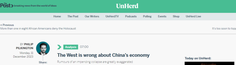 中国日报网12月12日电 近日,爱尔兰经济学家菲利普·皮尔金顿在英国新闻网站UnHerd刊文称,多项数据表明中国发展前景积极,一些西方媒体“唱空中国”的报道言过其实,甚至完全错误。