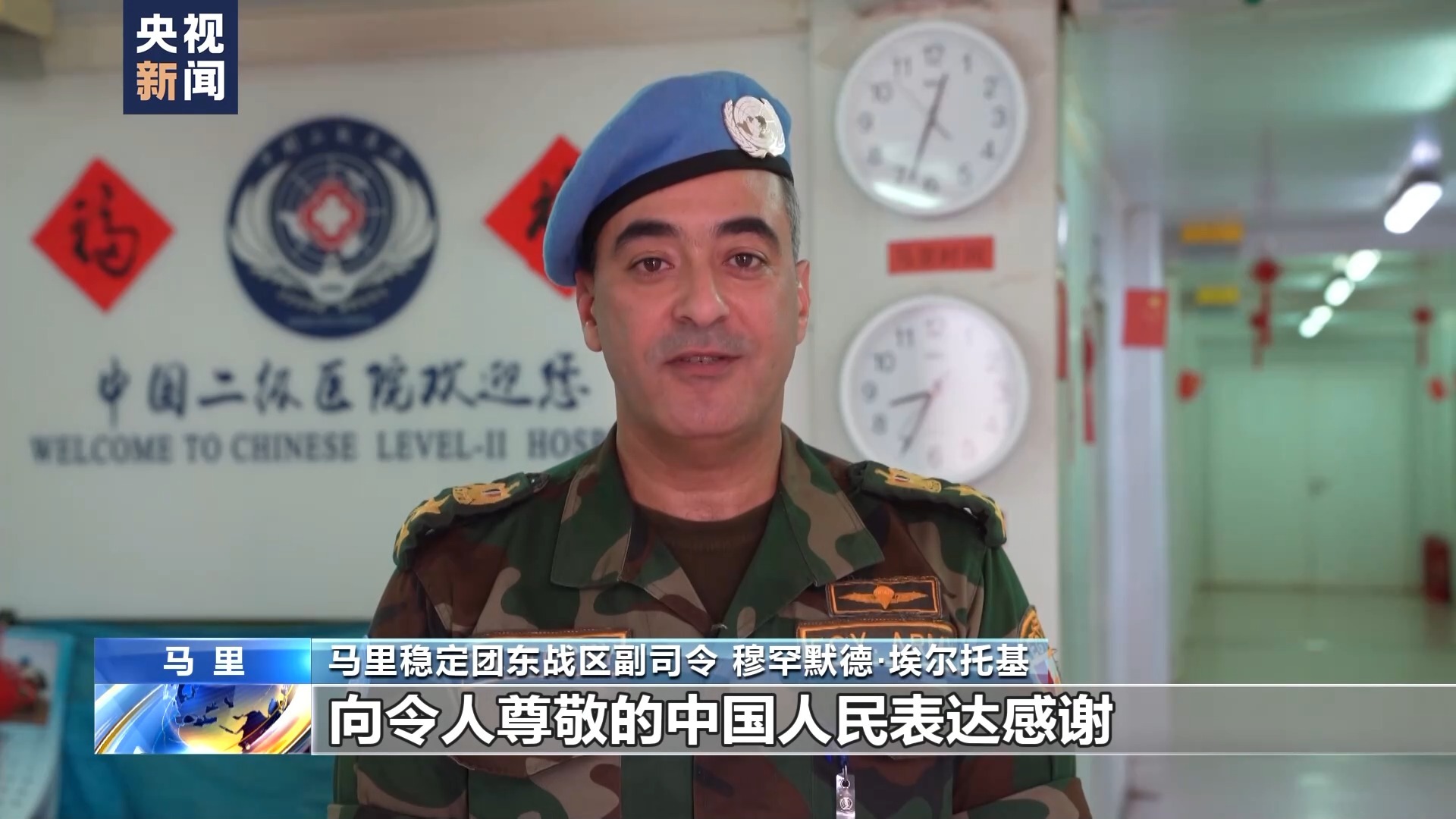 马里稳定团东战区副司令 穆罕默德·埃尔托基:我想利用这个机会向令人尊敬的中国人民表达感谢,感谢你们在这里提供人道主义服务,在加奥的二级医院为我们带来专业的医务人员。