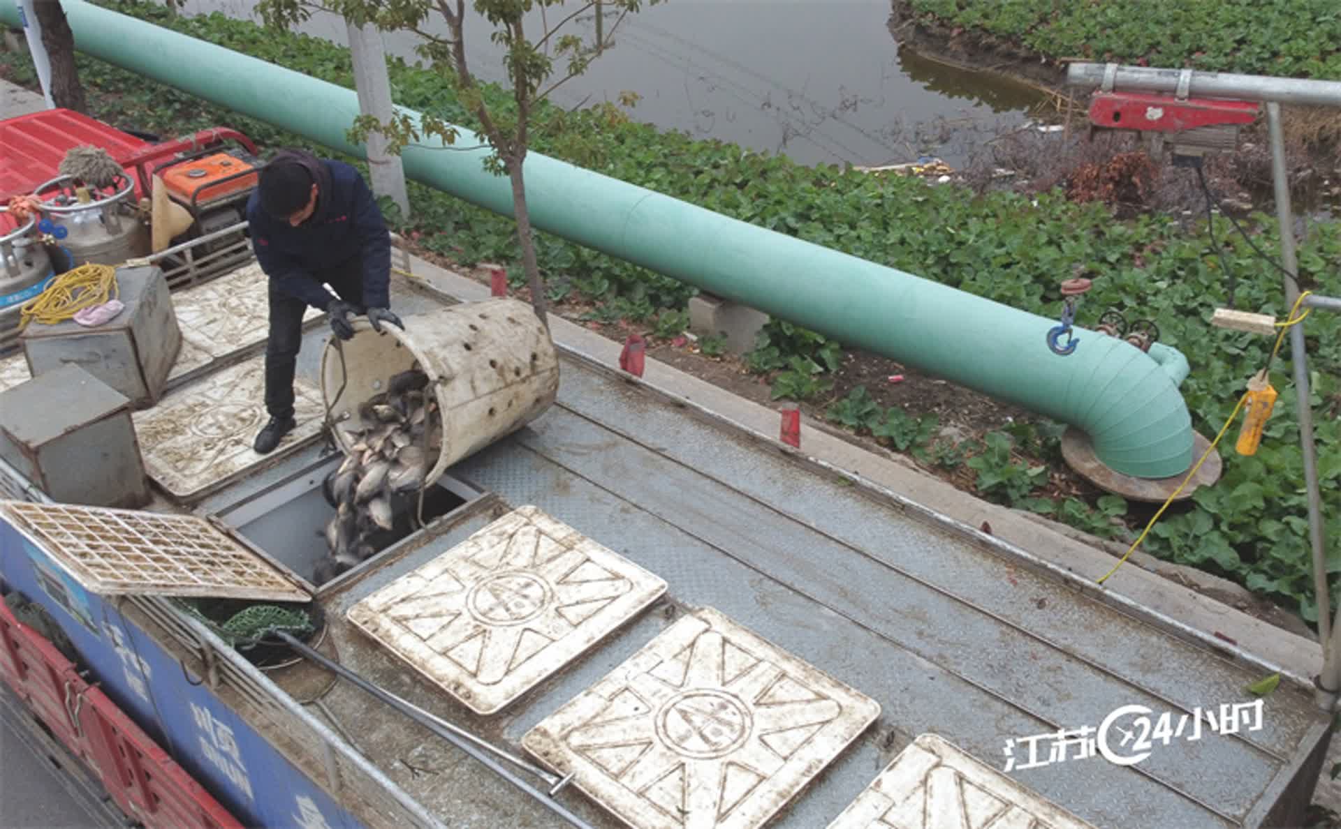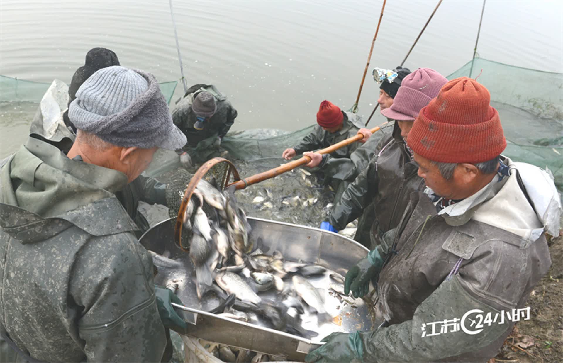 (特约摄影 杨桂宏 8:11摄 8:40上线)12月13日,养殖户正在兴化市中堡镇蜈蚣湖进行冬捕,准备装车销往市场。