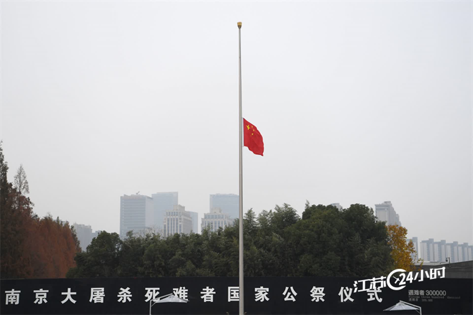 (记者 万程鹏 8:04摄 8:30上线)12月13日,南京大屠杀死难者国家公祭日升国旗下半旗仪式在侵华日军南京大屠杀遇难同胞纪念馆集会广场举行。