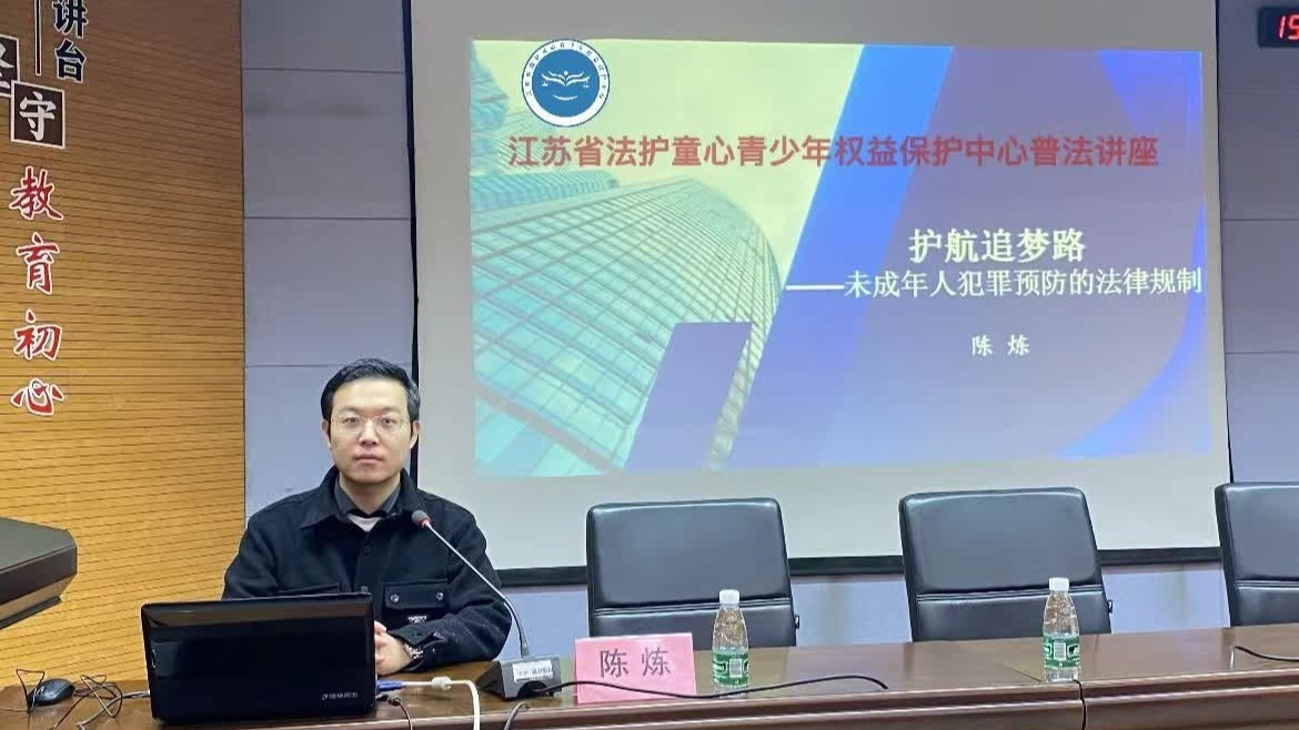 在授课中,江苏省法护童心青少年权益保护中心公益律师陈炼从未成年人犯罪的刑法规定等展开授课,重点强调了未成年人的犯罪原因和犯罪心理,指出预防未成年人犯罪,需要老师、家长、学生共同努力。同时,陈炼向师生讲解了未成年人不良行为与严重不良行为的界定,对这两种不同情形产生的不同法律后果进行分析,并讲解了未成年人如何运用好《未成年人保护法》与《预防未成年人犯罪法》维护自己的合法权益。