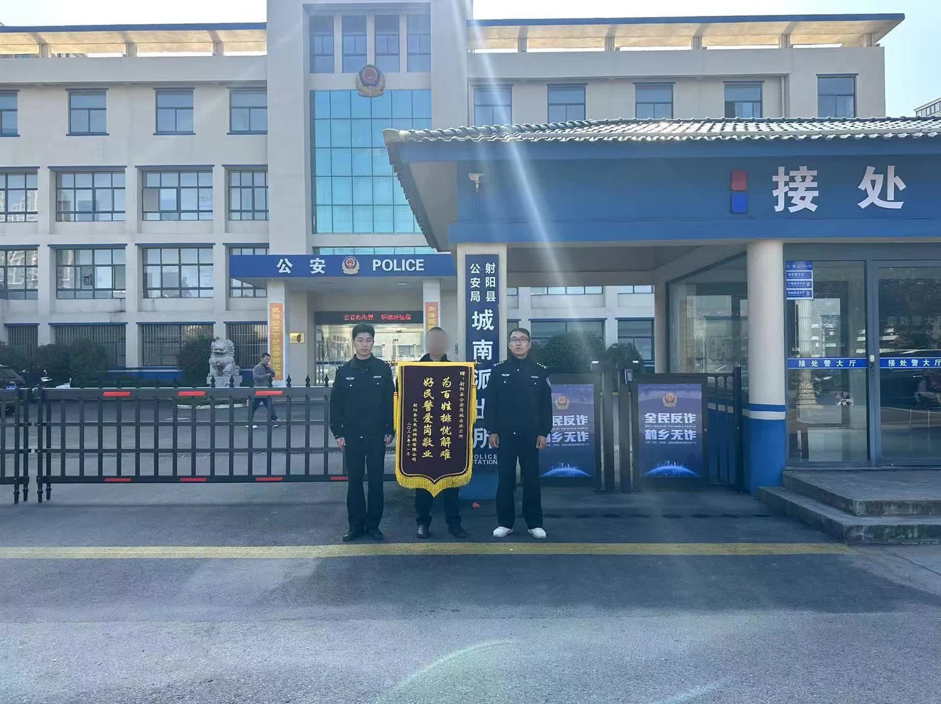 11月中旬,城南派出所接到群众求助,称其公文包在超市附近路途中丢失,内有工作文件及数张银行卡。接警后,民警根据其提供的信息,调取周边视频仔细排查,半小时内成功找回公文包并交还给失主。为表感谢,该失主特制作了一面锦旗送到城南派出所,感谢民警为其找回丢失的财物。