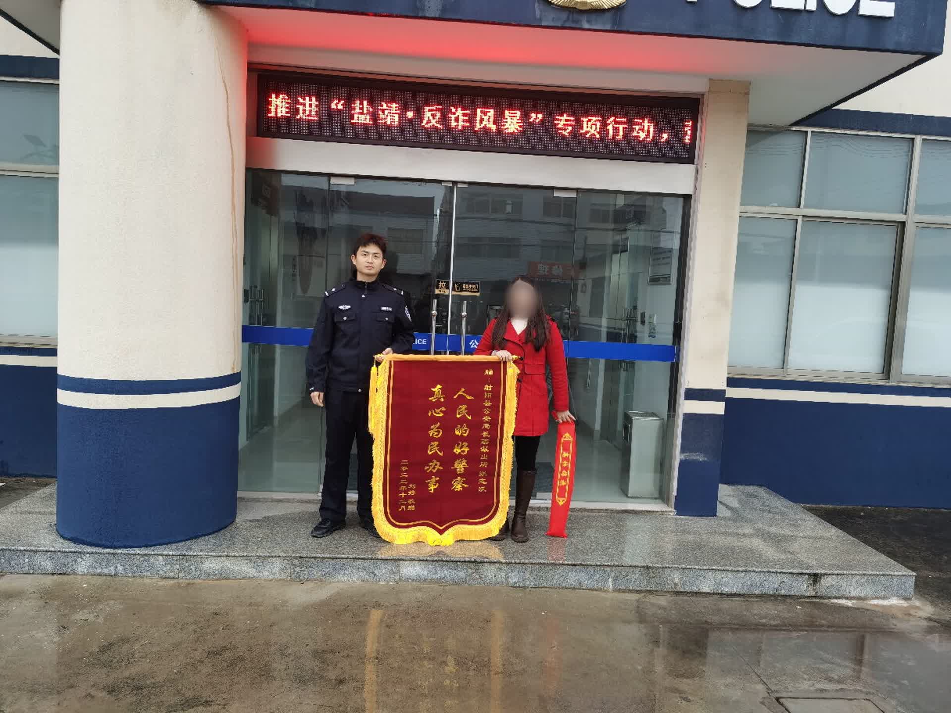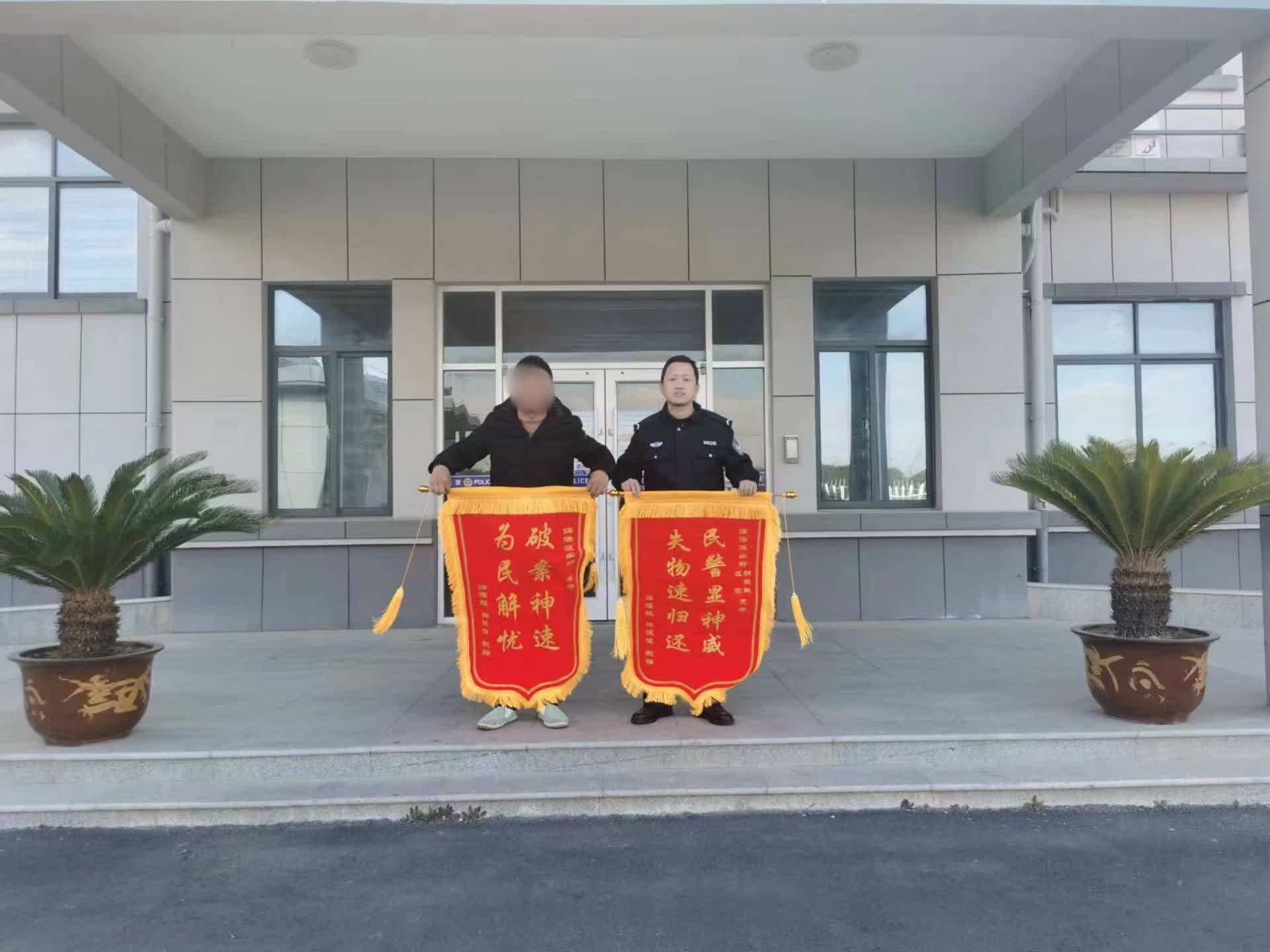 “太感谢你们了,快速破案,避免了我的损失!”临海镇居民张先生得知嫌疑人被抓获,被盗金手镯追回之后,特来到临海派出所送上锦旗表示感谢。