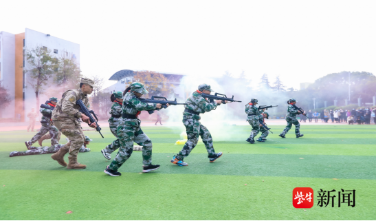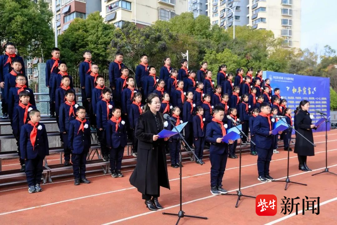 12月13日上午,南京市月华路小学夏翠莲校长带领86名少先队员朗诵《和平宣言》,莘莘学子声,悠悠爱国情,回荡在操场上久久不绝。学校战术演练方阵、匕首操方阵的队员用昂扬的风采展示了少年军校的实训成果。