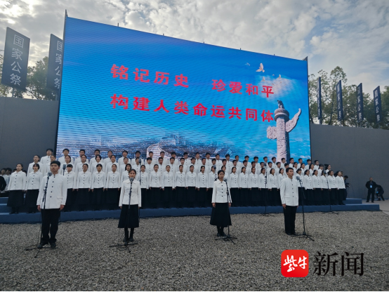 “亘古浩劫,文明罹难,百年悲叹,警钟鸣响。”南京大屠杀死难者国家公祭仪式现场,南京市中华中学86名学生朗诵《和平宣言》,字字铿锵,将来自南京的和平之声传入每个人心灵深处。记者了解到,今年是中华中学第三次承担在国家公祭仪式上诵读《和平宣言》的任务。学校为诵读专门组建了朗诵队,有200多名学生报名,经三轮选拔后确定了 104 人,最终上场的是 86 人。