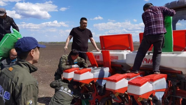图为托管农技人员调试农机。