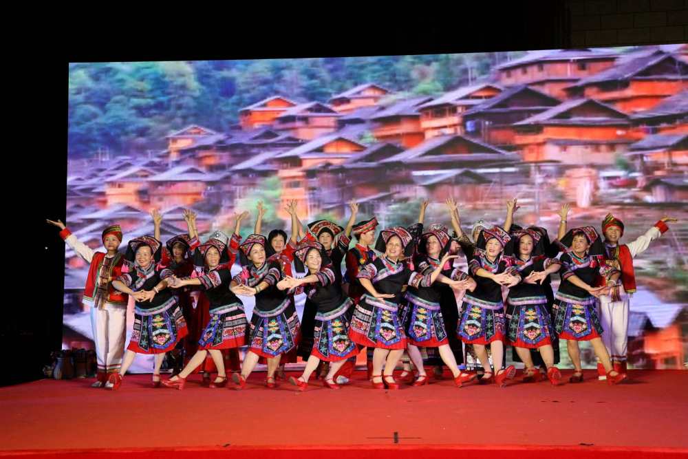 9月30日,在社区国庆节晚会上,居民们在表演民族舞蹈。(社区供图)