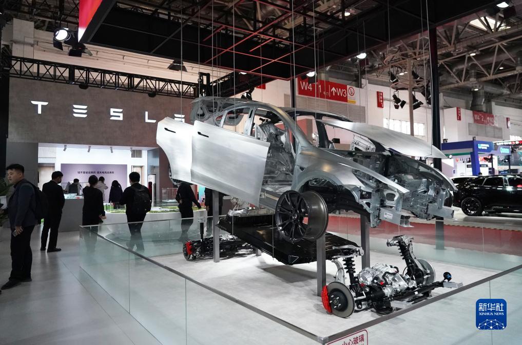 这是首届中国国际供应链促进博览会智能汽车链展区的特斯拉展位(2023年11月30日摄)。新华社记者 任超 摄