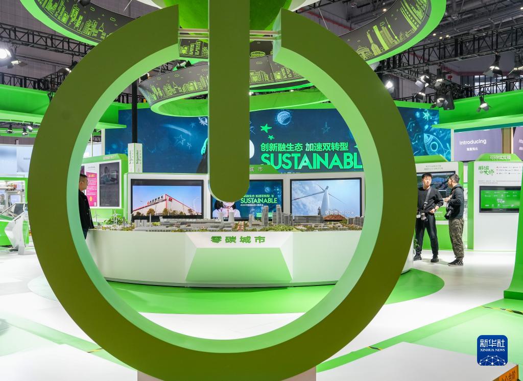 这是第六届中国国际进口博览会施耐德电气展台展出的“零碳城市”愿景模型(2023年11月9日摄)。新华社记者 丁汀 摄