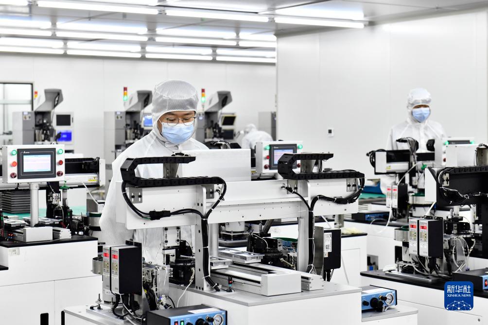 在山东省日照高新技术产业开发区智慧微电产业园,工作人员在生产滤波器(2023年6月29日摄)。新华社记者 郭绪雷 摄