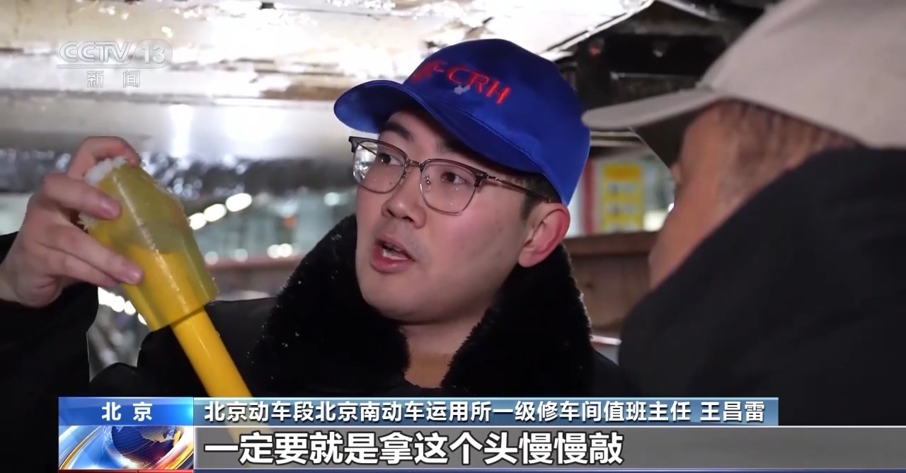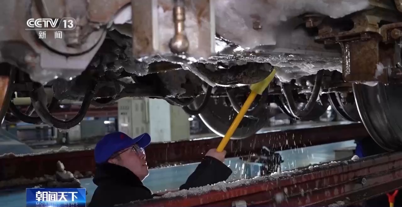 持续的低温、雨雪、冰冻天气,不仅影响了列车运行,也增加了检修工作的难度。负责京沪、京广高铁动车检修任务的北京南动车所里,检修员又增加了一个新身份——除冰人,他们要让穿行风雪的高铁列车温暖入库、安全体检。