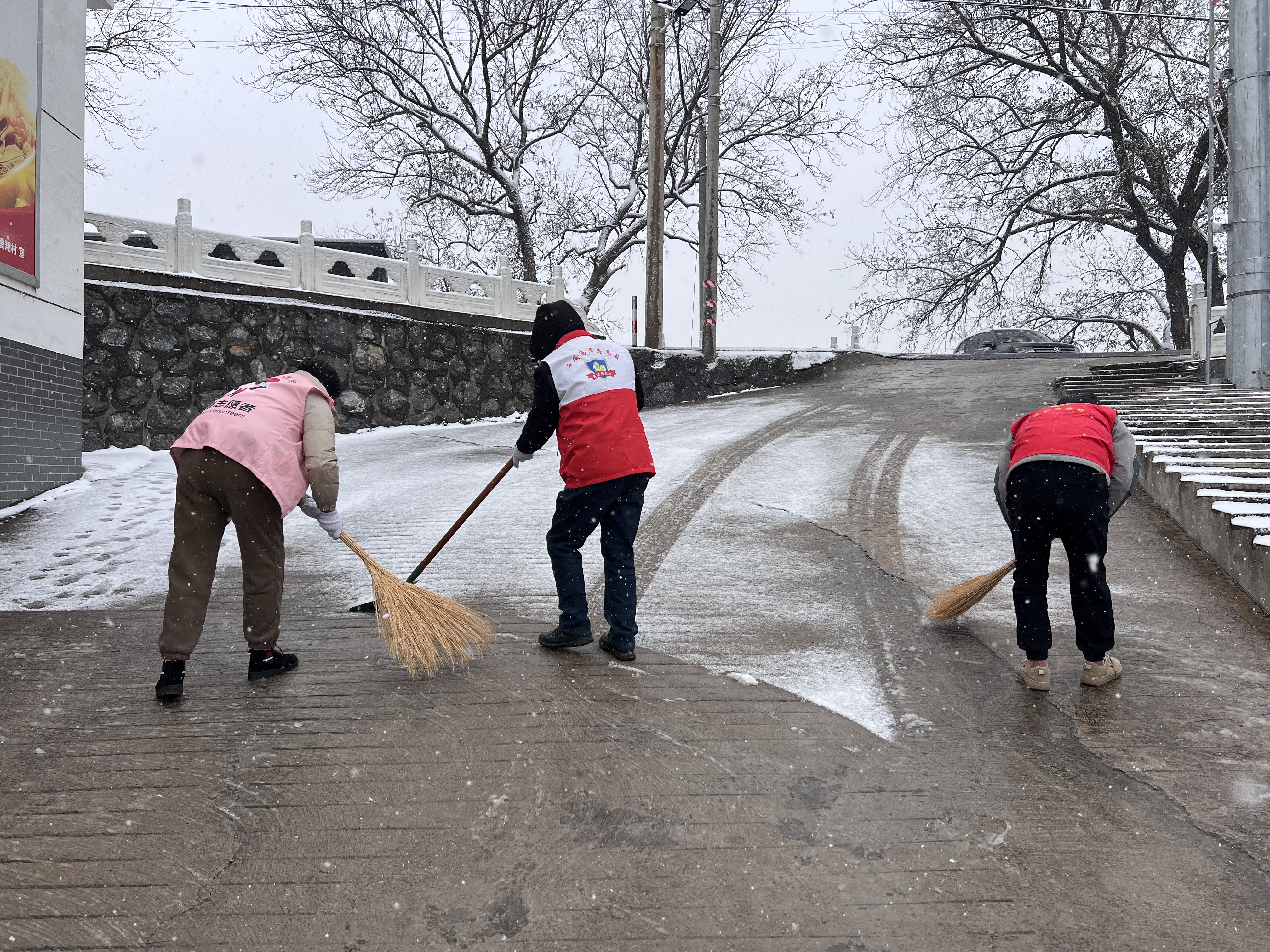 韩村村干部、党员、志愿者等成立清扫积雪志愿服务队,他们不畏严寒、拿着扫帚、铁锹等工具,冒着大雪,有条不紊地将路面积雪逐一清理,以实际行动体现了志愿者的责任与担当,让群众感受到浓浓暖意。在对办公区域周边积雪进行清扫的同时,他们还深入各自然村开展除雪工作,为村民留下一条条“平安路”。