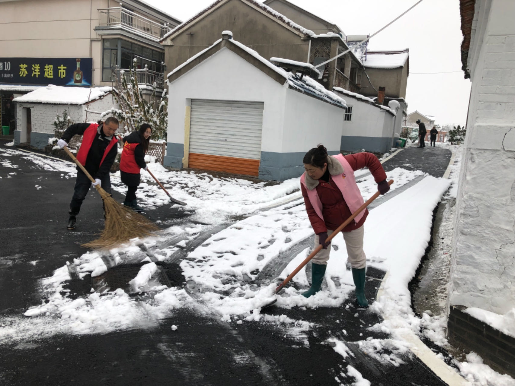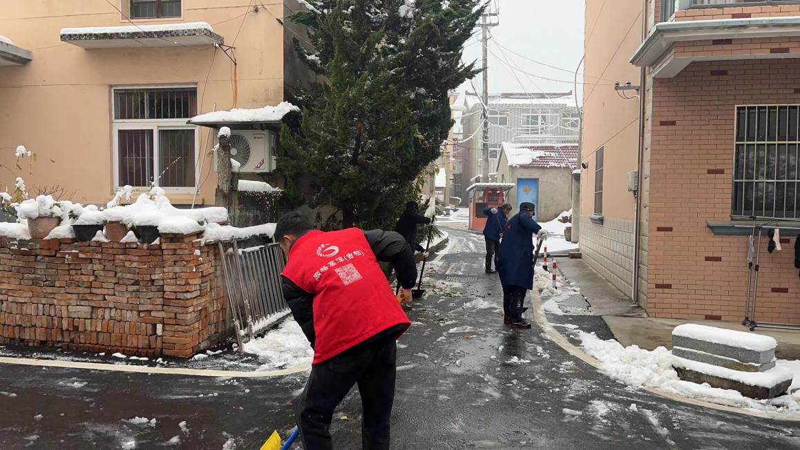 唐翔村迅速安排部署,积极行动,组织村委工作人员、环卫工人、志愿者及时在本辖区主次干道、背街小巷开展铲雪除冰行动。