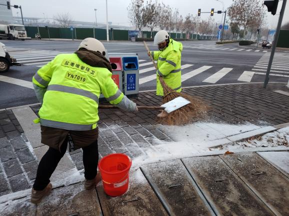 为保障除冰工作安全、高效、有序地开展,城管局环卫所合理制定应急预案,成立应急小组;同时组织人员对设施设备和物资储存情况进行检查,安排落实应急保障措施及工作方案,明确工作职责和分工,为市民安全出行提供了保障。
