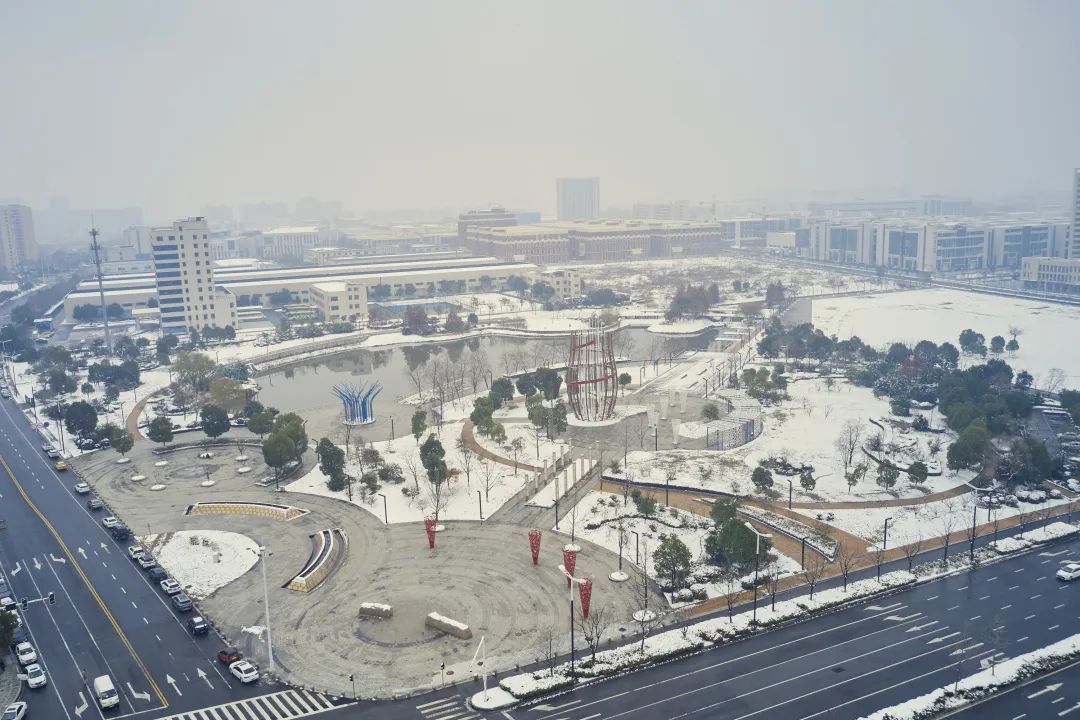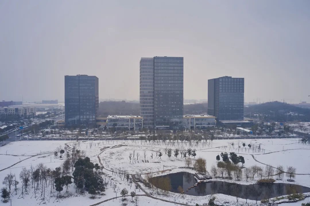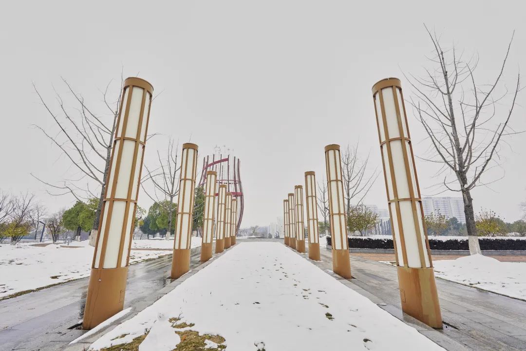 冬日,若有白雪,便惊艳了园区,白色的线条与多彩的楼宇线条交织,勾勒出了一派灵动。