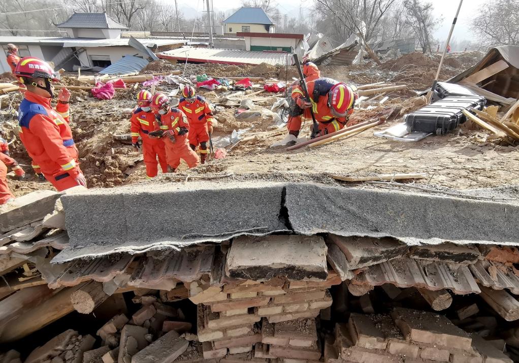 12月19日,救援人员在青海省民和县中川乡美一村进行救援。 新华社记者 张领 摄
