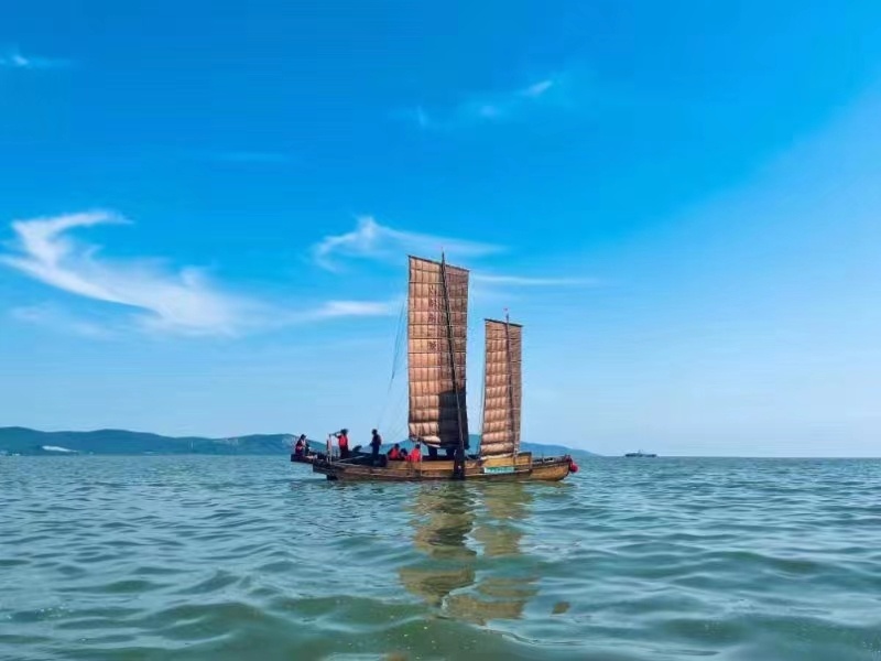 不管别人怎样猜测,他们打定了主意,余生要做件有意义的事。他们果真做成了。2021年6月23日,新船下水,村子里沸腾了,两个老头当喜事来办,隆重得不得了。按老传统,置办猪头三牲请利事,还在饭店里订了三桌喜酒,邀请至亲好友到场。这天,太湖风力三四级,正适合扬帆,船出内河进入太湖,俩老汉就升起帆,船快速向前,茫茫太湖,水天一色,这感觉应和了民间谚语:仙人眼热扯篷船。