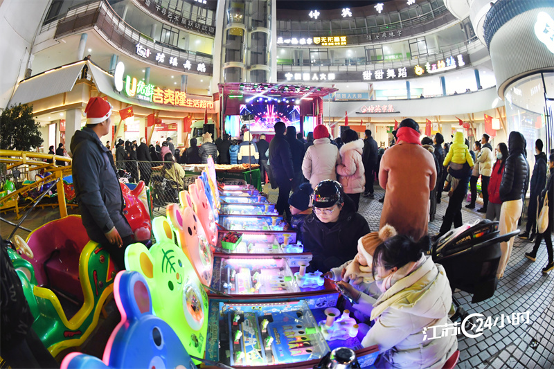(特约摄影 钮泉娜 24日19:19摄 8:55上线)12月24日,市民在苏州市吴江区仲英农贸市场,逛夜市,看节目,品美食,夜间经济人气旺。