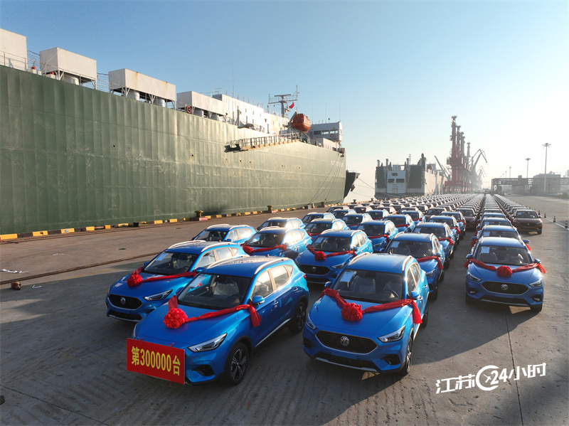 (特约摄影 王春 8:20摄 9:35上线)12月25日,在连云港港汽车出口码头,随着第30万台车辆准备装船出口海外,连云港港年度车辆出口历史记录再次被刷新,标志着该港区域性滚装件杂货进出口集散中心建设迈上新台阶。连云港港从2017年车辆出口突破万台到2023年突破30万台,滚装出口连续7年实现“井喷式”增长。