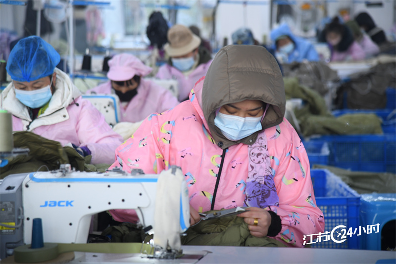 (特约摄影 崔德圣 8:45摄 10:15上线)12月25日,淮安市洪泽区高良涧街道一家服装企业的工人正在赶制一批外贸服装订单,准备供应海外市场。