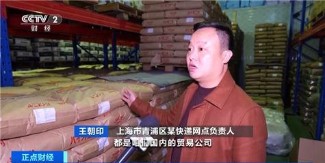 上海青浦区某快递网点负责人 王朝印:国内的贸易公司进口的国外产品放在我们这里,目前的日均出货量是一万多件,比上半年增长了大概50%。