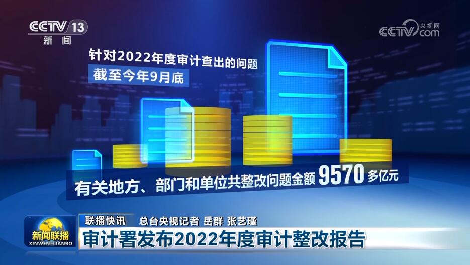 今天(12月26日),审计署发布2022年度审计整改报告,报告显示,针对2022年度审计查出的问题,截至今年9月底,有关地方、部门和单位共整改问题金额9570多亿元,制定完善规章制度1600多项,追责问责2540多人,解决了一些不利于改革发展和经济社会稳定的体制机制问题。