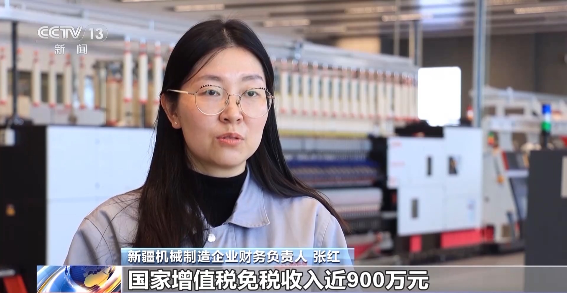 新疆机械制造企业财务负责人 张红:今年以来,我公司累计享受国家增值税免税收入近900万元,为我们持续创新增加了动力和底气。
