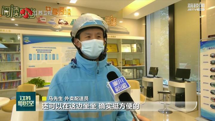 外卖配送员马先生说,可以过来喝喝水、充个电,还可以在这边坐坐,确实挺方便的。