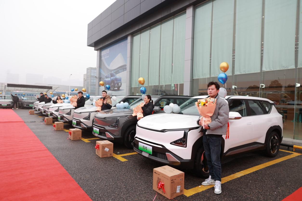 新华报业网讯 12月30日上午,盐城悦达智行店门前彩旗招展,一辆辆崭新的起亚EV5身披红绸带分列店前两侧,静候它们的主人。首批集中交车仪式上,40位EV5车主喜提心仪已久的新车,脸上洋溢着喜悦之情。与此同时,盐城港大丰港口码头也在紧张地忙碌着,12月份第四批3391台车正鱼贯入船,随着最后一台赛图斯上船,标志着悦达起亚2023年圆满收官。全年实现整车销售16.6万台,同比增长31%,其中出口整车8.6万台,同比增长125%。