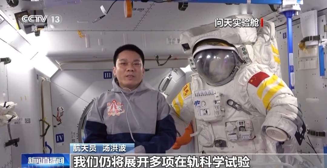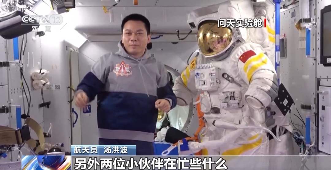 航天员 汤洪波:嗨,大家好。2024年的第一天,刚才检查了一下我们的飞天舱外服,现在准备去看看我的另外两位小伙伴在忙些什么。