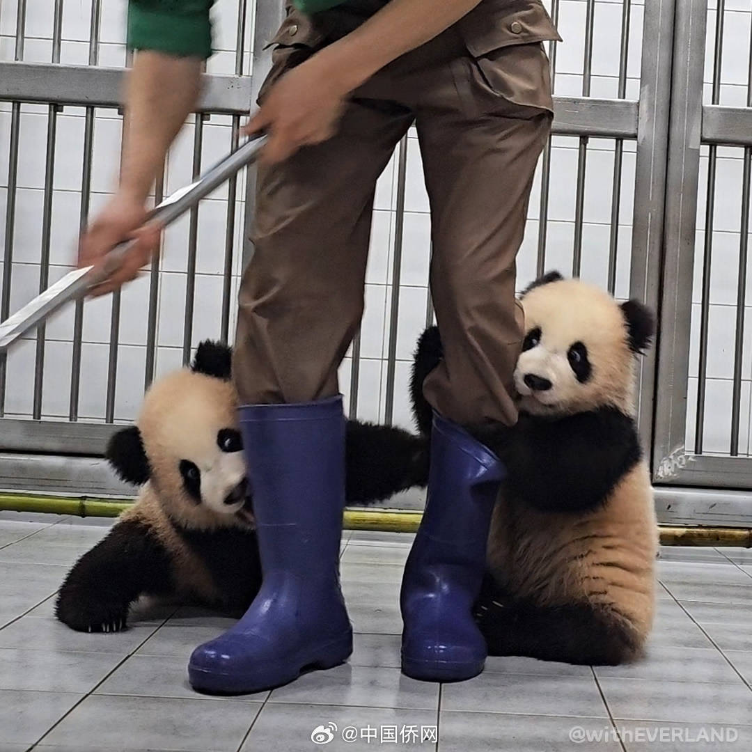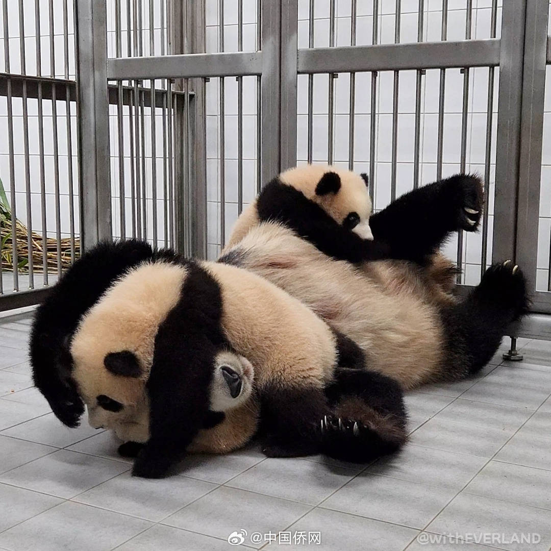 韩国爱宝乐园社交媒体账号1月2日透露,旅韩双胞胎熊猫幼崽睿宝和辉宝将从1月4日起正式出外场。