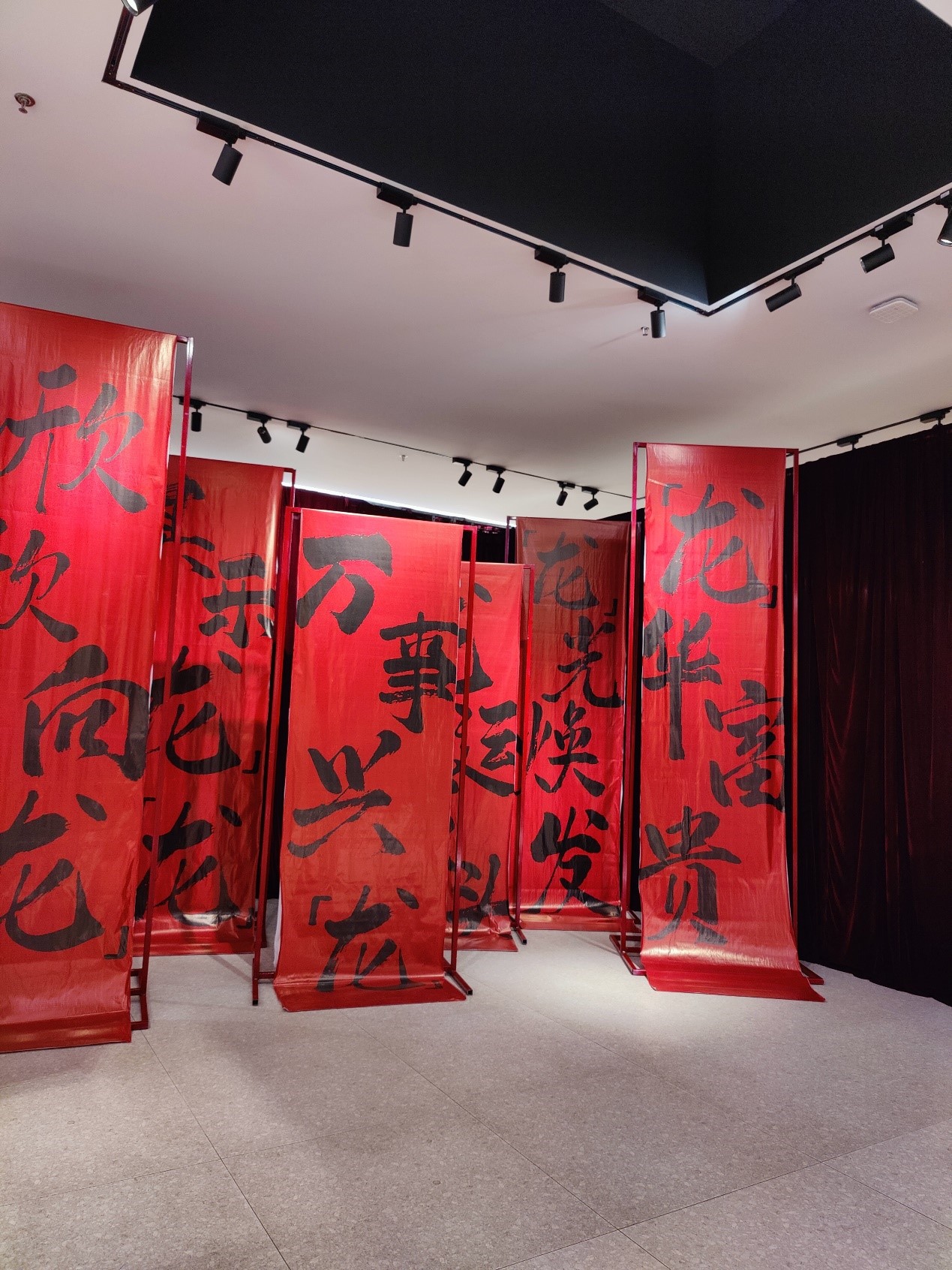 此外,展览还用时下流行的龙年祝福语,如万事兴“龙”、“龙”光焕发、“龙”华富贵等,布置了潮流打卡区。