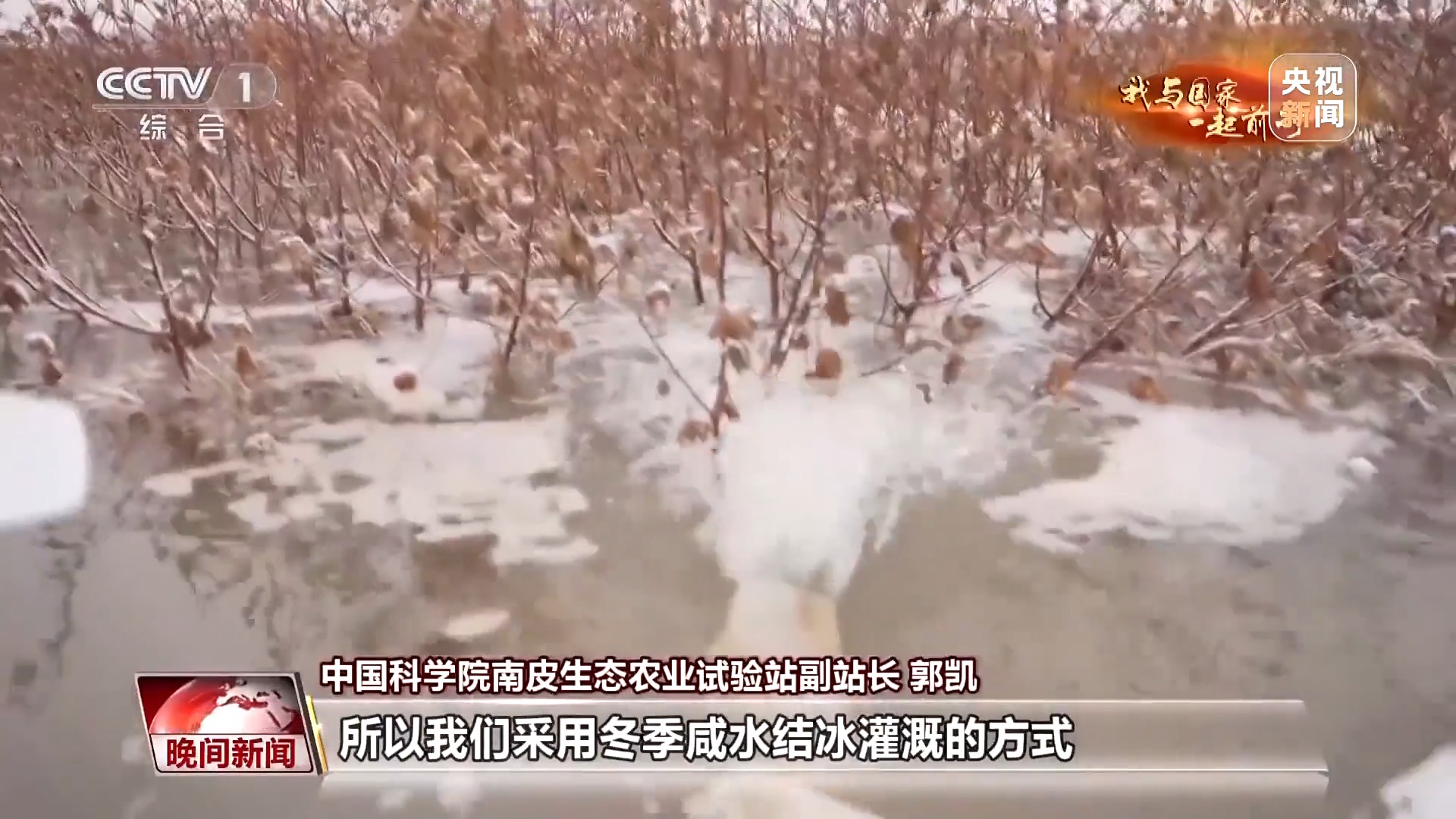 中国科学院南皮生态农业试验站副站长 郭凯:这个地方淡水资源缺,咸水非常丰富,但是咸水矿化度又太高,不能直接灌,所以我们采用冬季咸水结冰灌溉的方式。