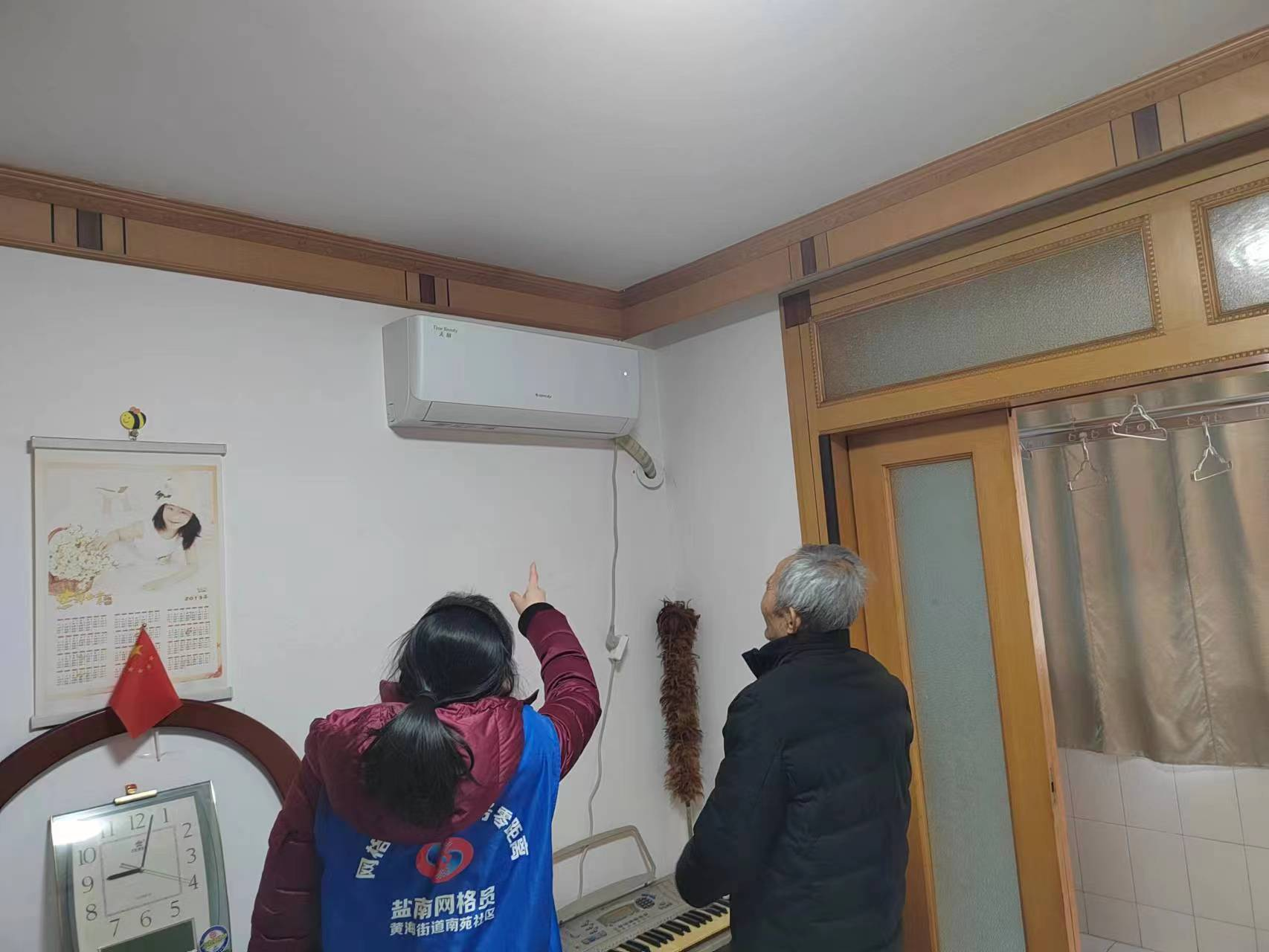 新苑一区网格员邹国元在走访独居老人的过程中,发现辖区内的朱爷爷无子女,无劳动能力,也没有法定赡养人,在这严寒的冬天家里连个空调、暖气都没有。就将此情况第一时间反馈社区书记,申请为老人安装空调。