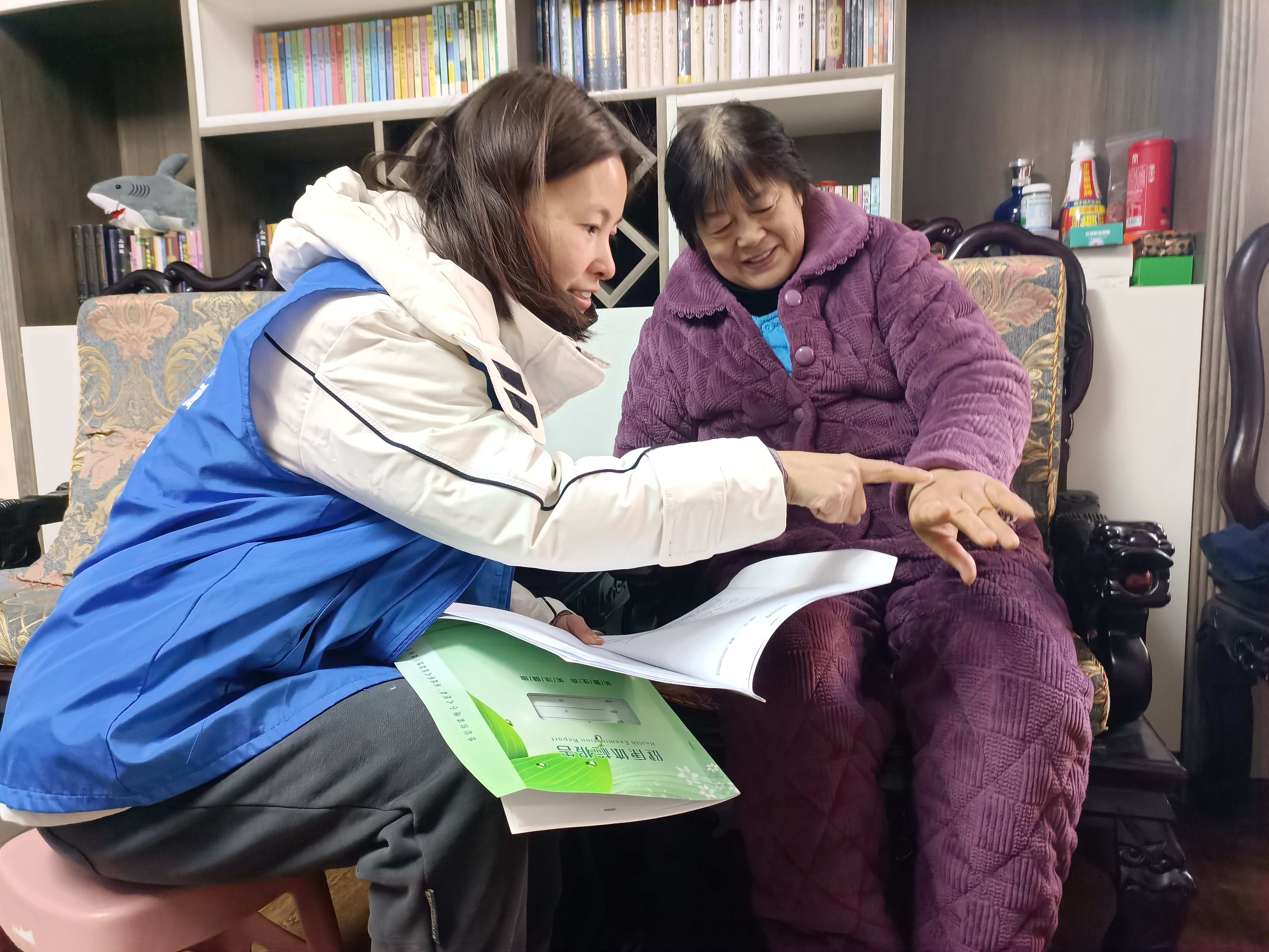 近期,南苑社区老人体检报告结果出来后,新苑三区网格员王海燕考虑到辖区部分老人年龄较大又住在高层出门行走不方便,主动将体检报告送到老人手中,并对老人们进行关心和了解,叮嘱老人们要定期到医院检查身体状况。同时也向老人们详细解读了健康报告,让老人更直观、更明白。