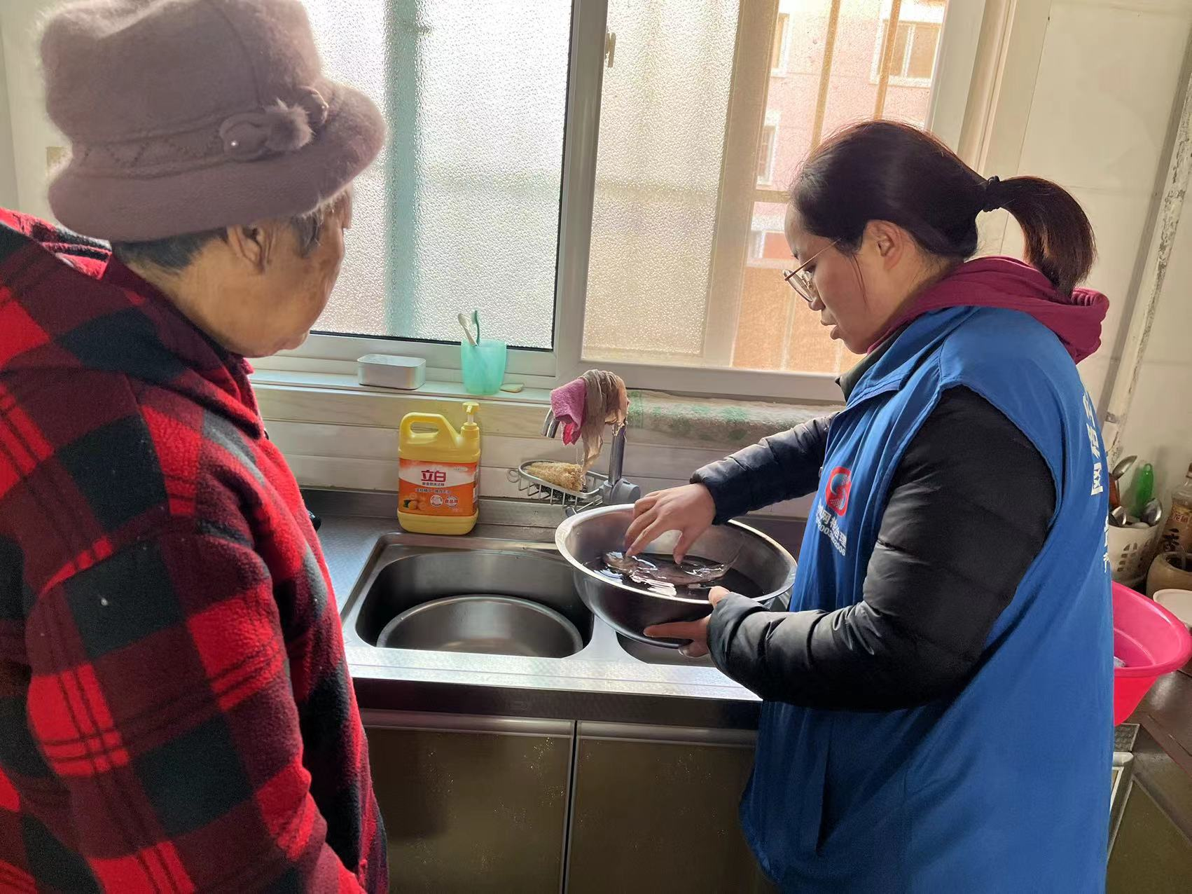 由于年老体弱,程奶奶平时连室内卫生都不能正常完成,生活环境、卫生状况得不到保证。心系老人的网格员游凡隔三岔五到程奶奶家询问身体情况的同时,帮老人洗碗刷锅、打扫卫生、拉拉家常……“奶奶,有事一定要给我们打电话,我们不怕麻烦。”临走时,网格员不忘叮嘱老人,这一句简单的问候、一声真切的叮嘱,把深情的问候与关心切实送到了老人心里。
