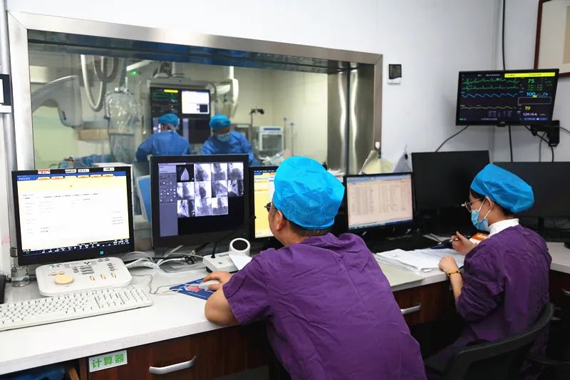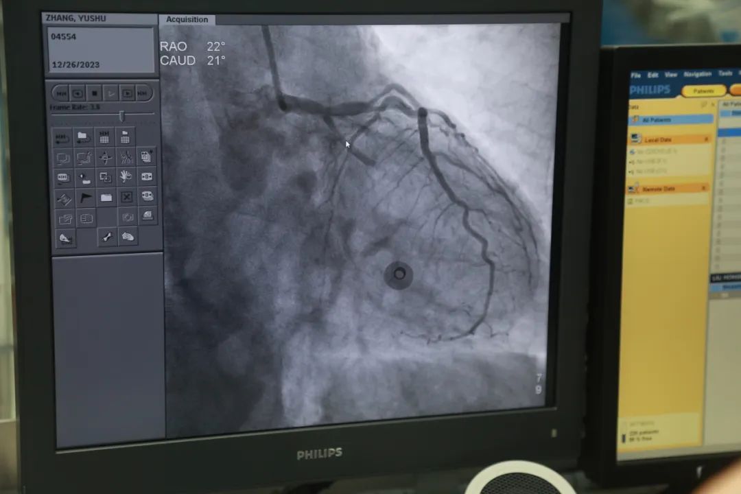 经紧急讨论并征求家属同意,心血管内科叶达平主任对患者实施冠状动脉造影术,对阻塞血管进行介入治疗并植入支架。