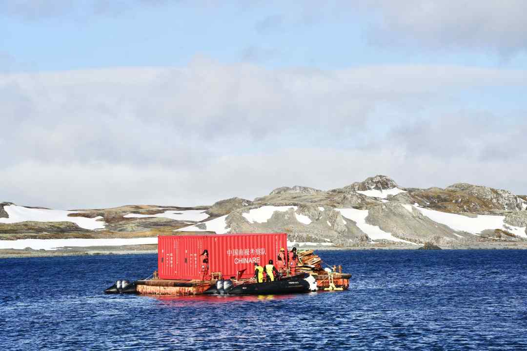 经过11个日夜的奋战,克服大风、大雾、潮汐等不利因素影响,考察队于1月7日完成了此次长城站卸货任务,按计划卸运了物资、燃油,并装运固定资产及部分垃圾回国。其间,所有物资均采取橡皮艇夹带驳子的方式运输。