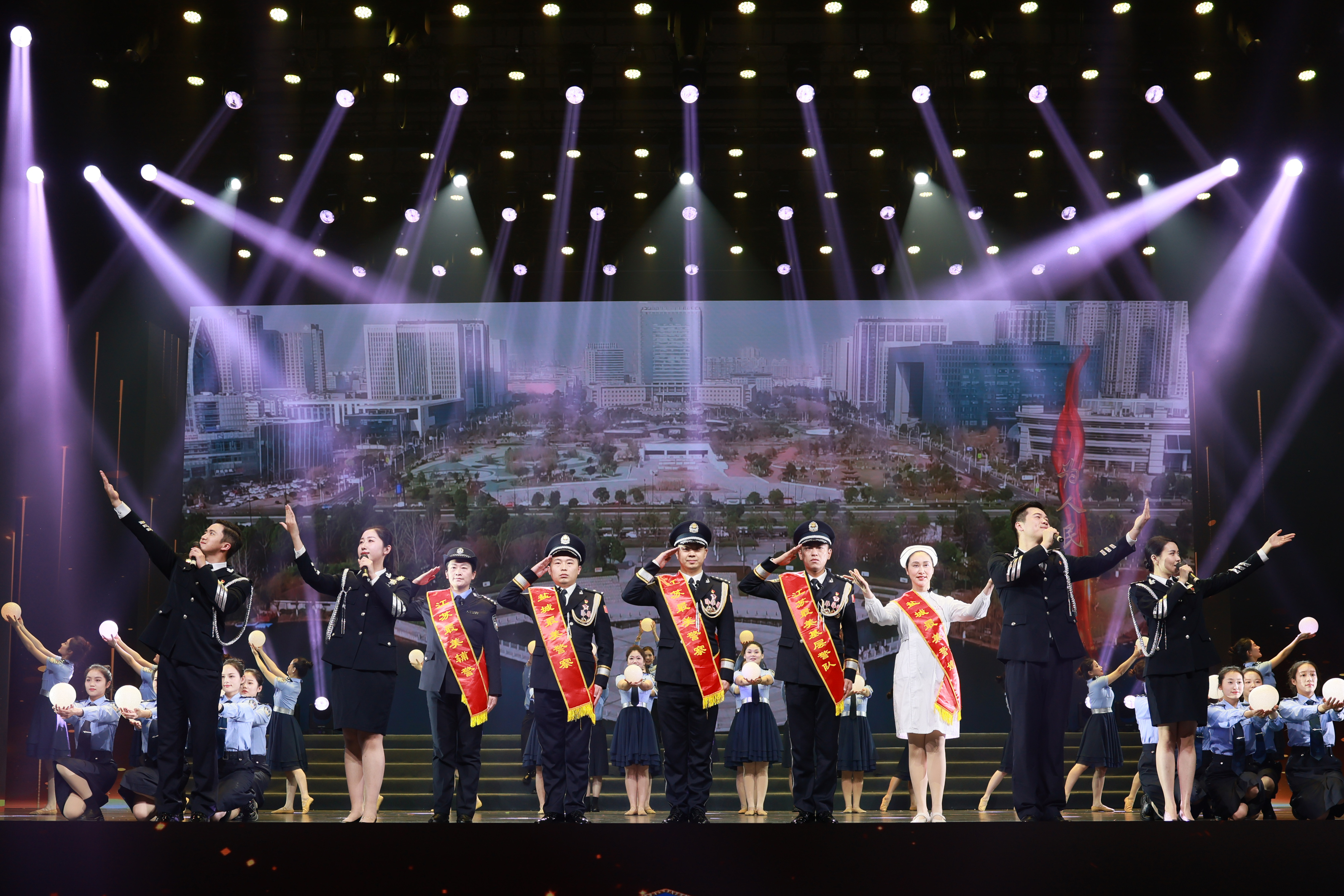 榜样的力量沉甸甸,他们是一面面旗帜、一盏盏明灯,示范带领我们迎难而上,勇毅前行。歌曲《最美的你》唱出了盐城公安历年警营“最美”代表的坚守与付出,活动现场还揭晓了2023年盐城最美警察、最美辅警、最美警属、最美基层警队和见义勇为好市民,一次次如潮的掌声,表达了观众对公安功模和见义勇为英雄的崇敬之情。