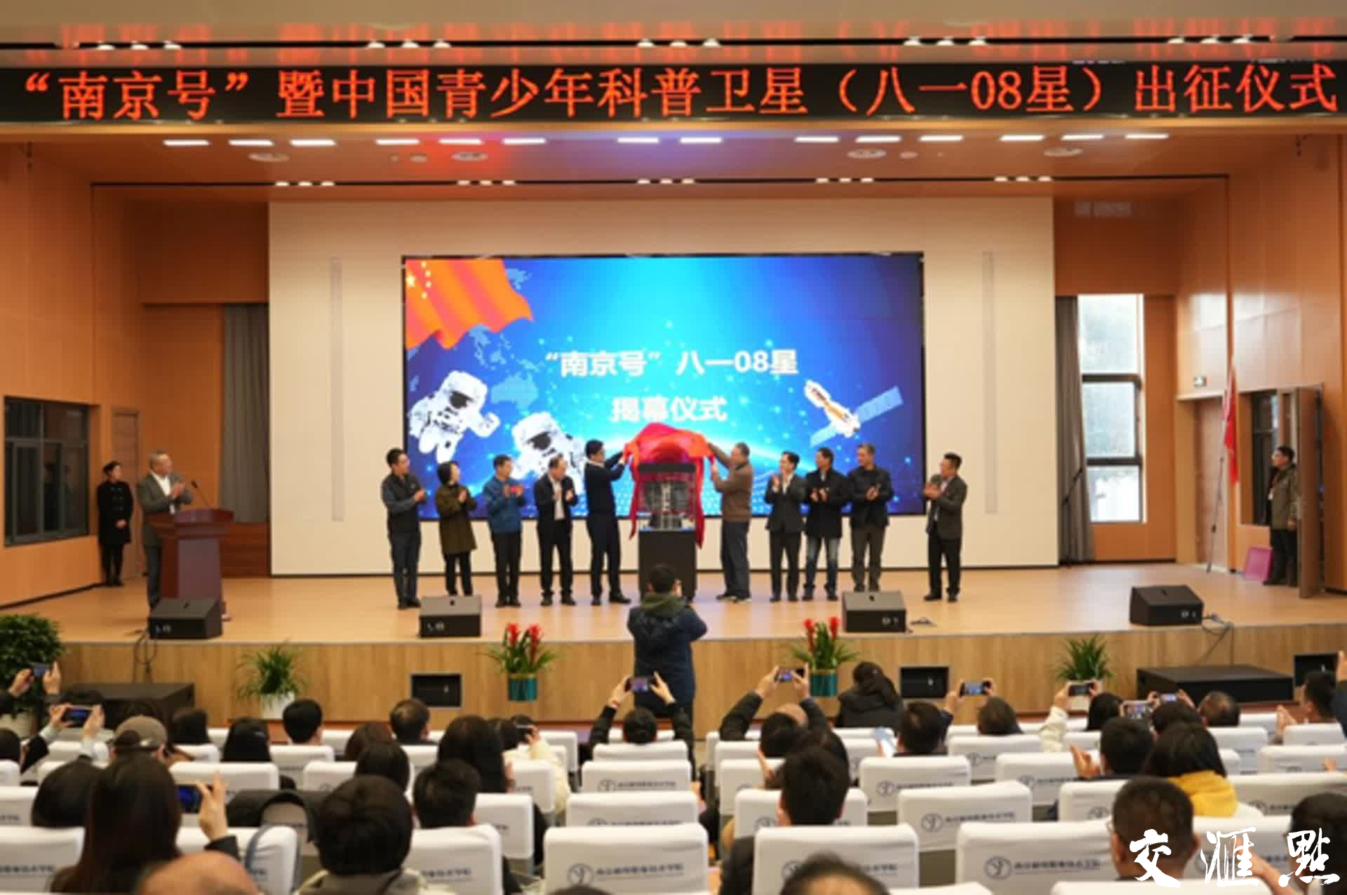 交汇点讯 从仰望星空到走向星辰大海。1月12日,“南京号”暨中国青少年科普卫星(八一08星)出征仪式在南京机电职业技术学院举行。作为我国首颗由高职院校师生主要参与研制的科普卫星,“南京号”八一08星将搭乘天舟七号货运飞船,择机发射升空并在轨释放。