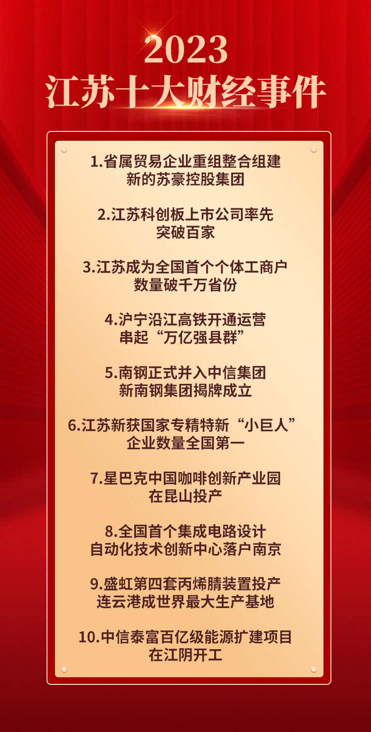 这些事件根据新华日报大数据公司的监测数据,经“江苏财经年会评审委员会”评审遴选而出。从宏观政策到微观企业运营,从传统产业转型到新兴产业的崛起,全方位反映了江苏经济发展的动态和趋势。