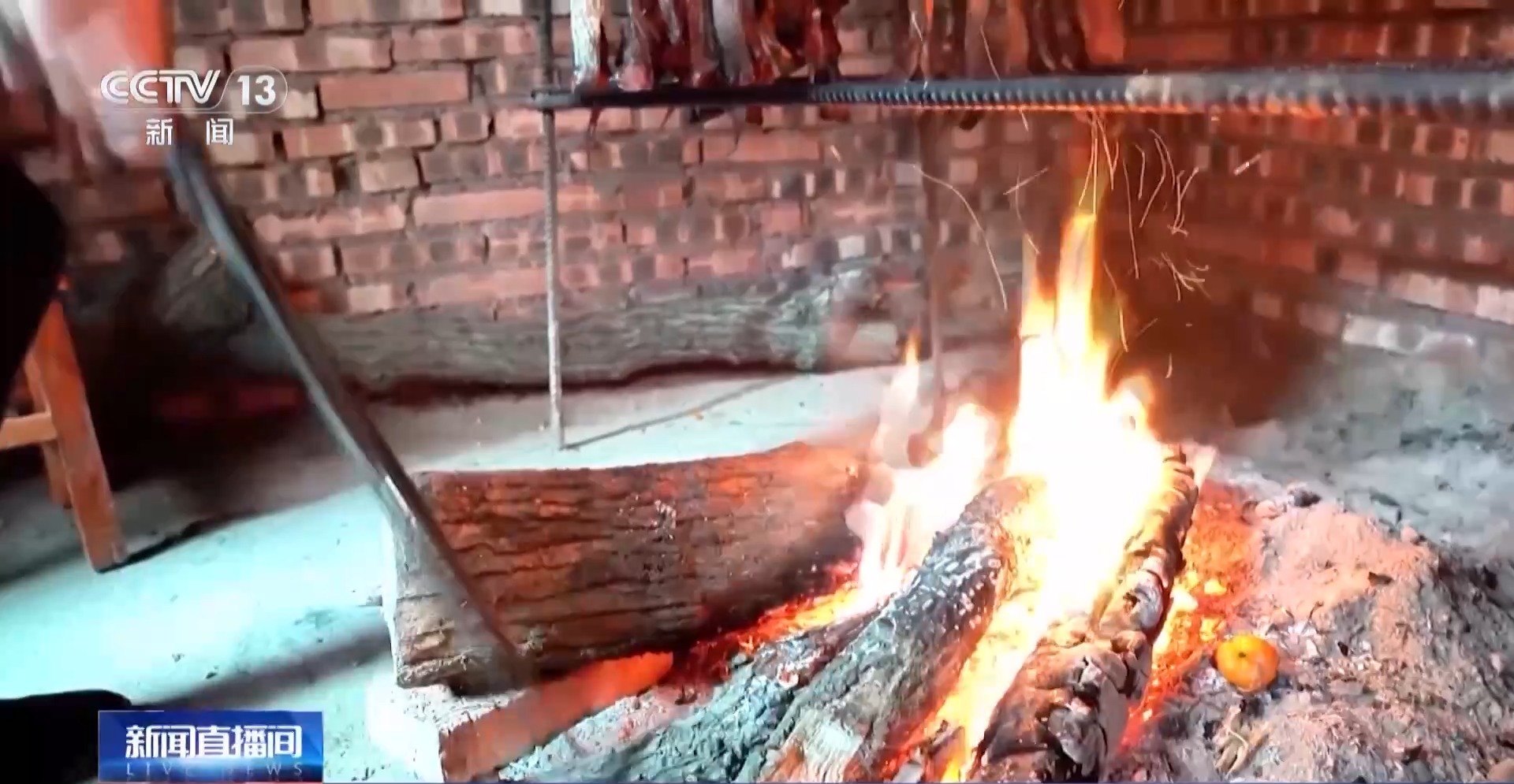 试验中,消防人员搭建起了一个居民熏腊肉常用的火坑,上方用支架挂起猪肉,下方生起小火堆。由于制作腊肉时需要用烟和火熏烤腌制过的生猪肉,但腊肉经过长时间高温熏制,会不断地析出油脂,聚集在肉的表面,汇集后往下滴落在火堆上。