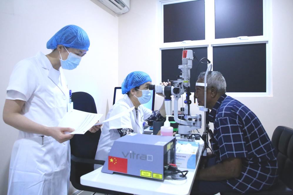 69岁的艾哈迈德·卡洛是中国医疗队“光明行”活动的获益者。两个儿子曾带着患有眼疾多年的老人辗转多家医院,均因手术难度大而无法得到有效治疗。2023年,中国医疗队医生经过充分评估后,给老人成功实施了手术。术后揭开眼罩时,老人家激动地说:“医生,我可以看到你的胸牌了,谢谢你!”老人的儿子也在社交媒体发帖说:“真诚感谢中国医生。”除了治病,中方还着力培训当地医务人员,力争为当地打造一支“带不走”的眼科专家队伍。