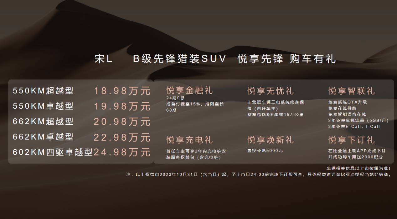 在发布会上,宋L的价格也正式公布。相比同级别车型,宋L的价格具有很高的竞争力。同时,为了回馈消费者的支持,宋L还推出了一系列的优惠政策。消费者在购买宋L时可以享受到优惠的价格和丰富的礼包,进一步提升了这款车的性价比。