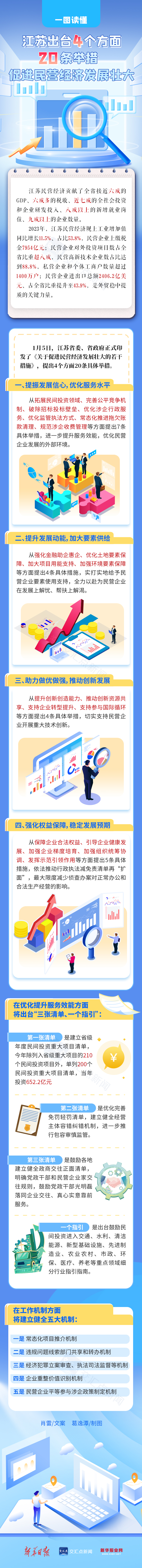 江苏是民营经济大省,是民营企业投资兴业、蓬勃发展的热土。民营经济是江苏经济发展的重要支撑、创业创新的主体力量、吸纳就业的主要渠道和创造社会财富的主要来源,在稳增长、促转型、稳就业、保民生等方面发挥了重要支撑作用。日前,江苏省委、省政府正式印发了《关于促进民营经济发展壮大的若干措施》。民营经济在江苏经济中占有多大的分量?新措施有哪些主要内容?交汇点新闻带你一图读懂。