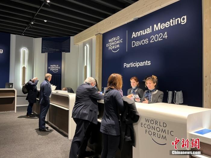资料图:当地时间1月15日,与会人员进行参会注册领取证件。当日,世界经济论坛2024年年会在瑞士东部小镇达沃斯拉开帷幕。